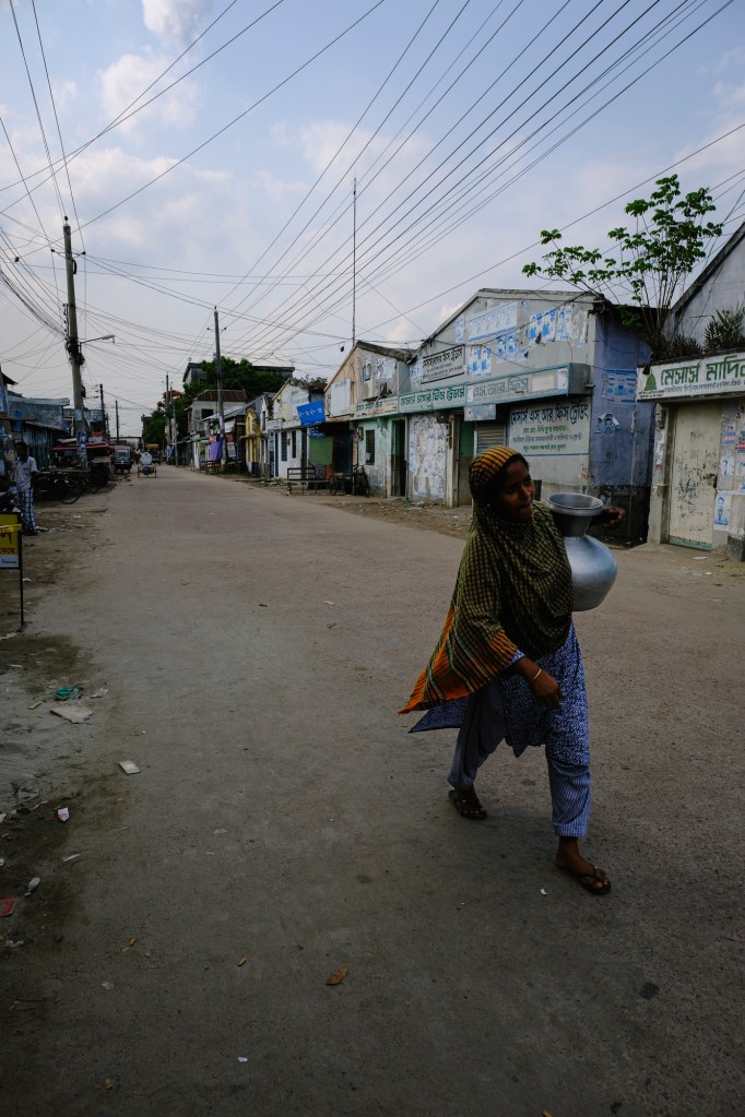 Begum collects water from a government-built pump that pulls clean water from deep under ground through tubes – a process that around 97% of the Bangladeshi population uses to get water, according to Water Aid. The pump is only 700 meters away from Begum’s home, but it can take her anywhere from 30 minutes to an hour to bring water back home. Often, there are large crowds waiting to pump water, which can become dangerous.