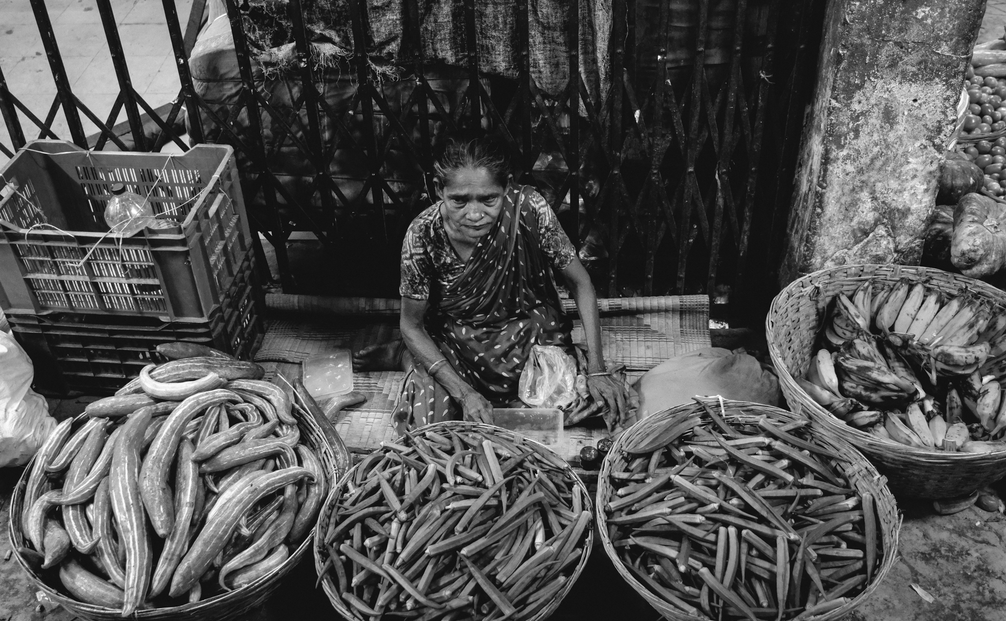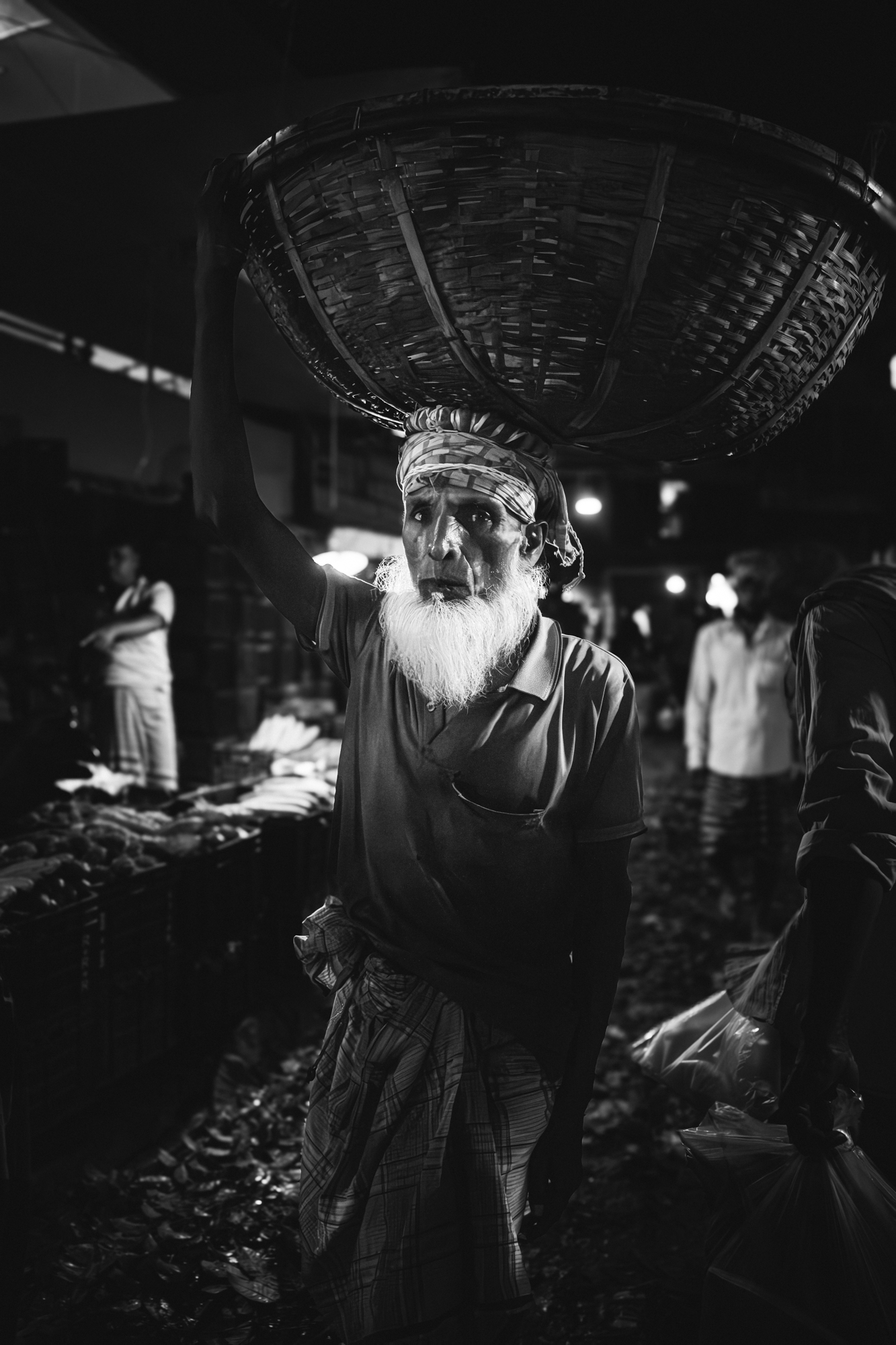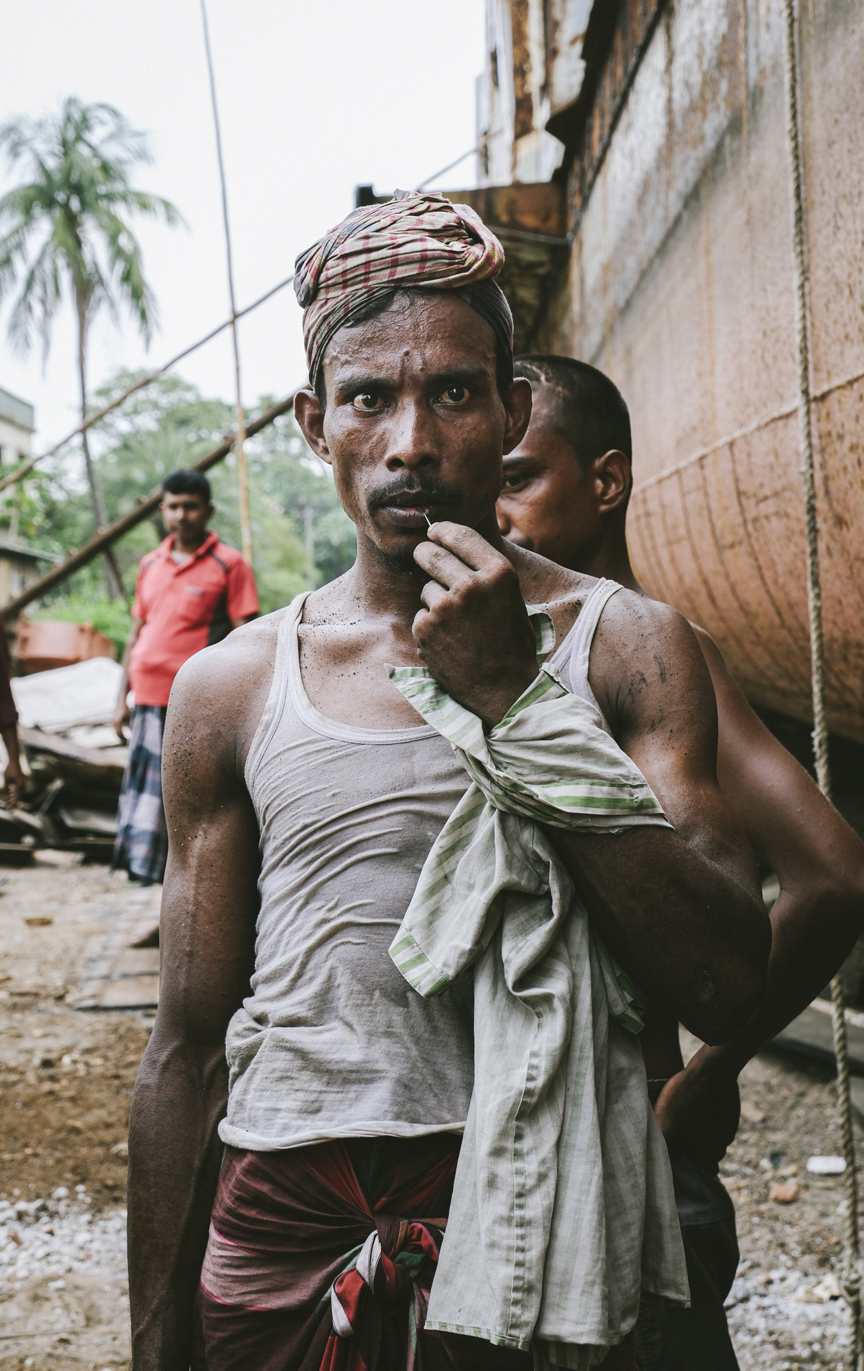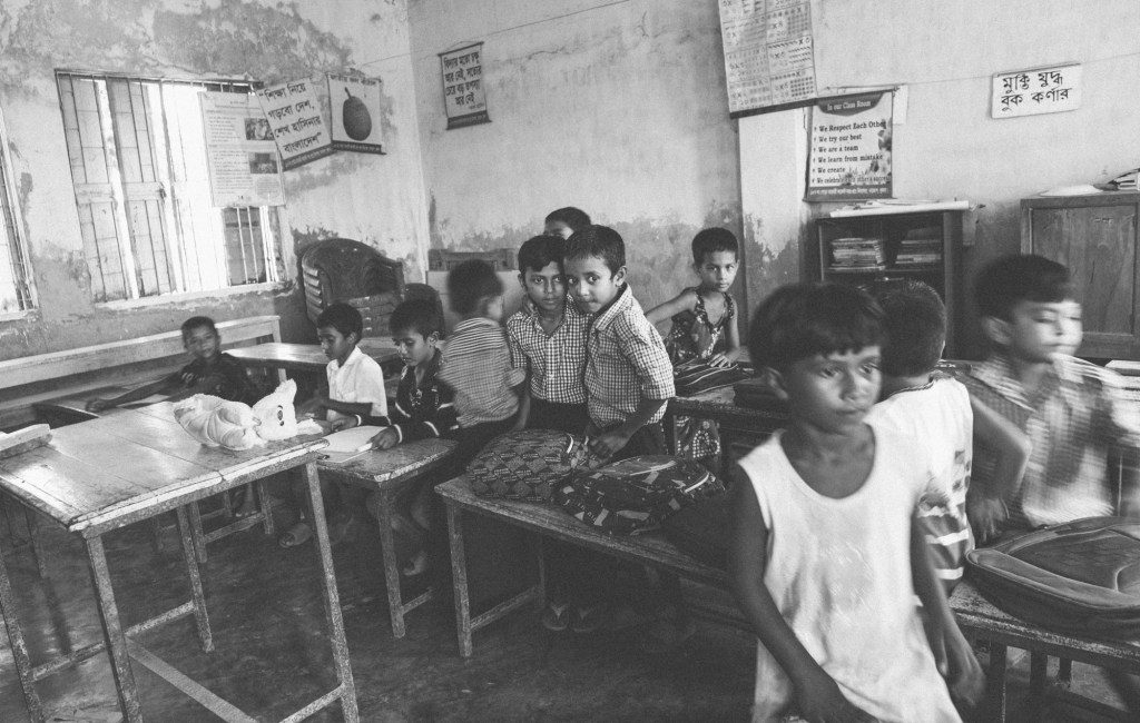 A father and his son sit inside the doorway of their stilted home, perched above the Pasur River, in Dhangmari, Bangladesh. These houses are designed for places that are prone to flooding, or surrounded by river and sea. Families typically have to rebuild their home each month, due to harsh flooding and rising tides.Momena Beguma is an 85 year old prostitute in the Dhangmari Village, in Bangladesh. Beguma makes about 50 Bangladeshi Taka a day working as a prostitute, which is equivalent to 0.43 United States Dollars. Beguma has done this work for the past 15 years, after her husband died of sickness. She lives with her son and her grandson alongside the Passer River in a stilted home, which has to be rebuilt each year due to flooding and river erosion. There is currently an estimate of 5 million people who live on sand and silt in Bangladesh, and living in this constant migration, due to Climate Change.Ankle deep in silt, a lady fishes for hours along the Pashur River, in Dhangmari, Bangladesh. Dhangmari is known for its increasingly saline water and silty shores.Members of a small fishing community prepare to begin otter fishing, in a small channel off of the Pashur River. Other members clean freshly caugh fish for their next meal.A lady watches from the doorway of a home inside the second largest slum in Bangladesh. Slums are typically unplanned residential areas, living in cement structures, housing hundreds of families. This particular slum had over 20,000 people living there.