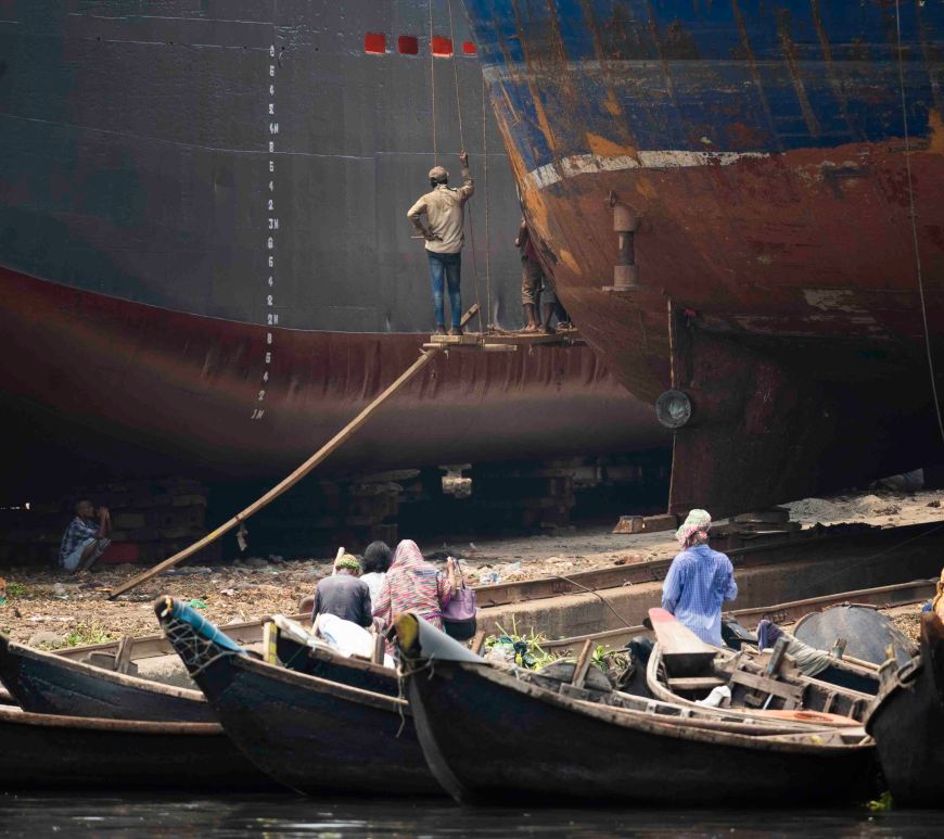 The Buriganga River flows through southwestern Dhaka, the capital of Bangladesh, with traffic not too much different than the rest of the city. Small wooden porter boats dodge hulking barges and foghorns blare as children swim off concrete banks. The waters are dark and murky, and the city’s trash washes up on its beaches. The Keraniganj area of the river is dotted by shipyards, squeezed … Continue reading Working between water and steel